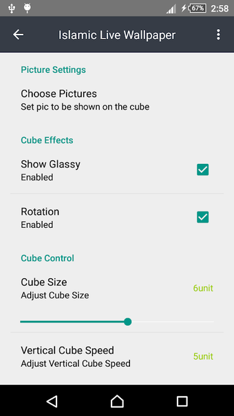 Appens funktioner inkluderar möjligheten att manuellt ändra bilder på kuben, justera kubens storlek och transparens samt styra rotationshastigheten. Dessutom kan användare justera ljusstyrkan och optimera prestanda tack vare OpenGLES-teknologin, vilket säkerställer att appen fungerar smidigt med bra minneshantering. Islamic Live Wallpaper är en utmärkt lösning för de som vill ge sina enheter en personlig touch med vackra och lugnande bilder.